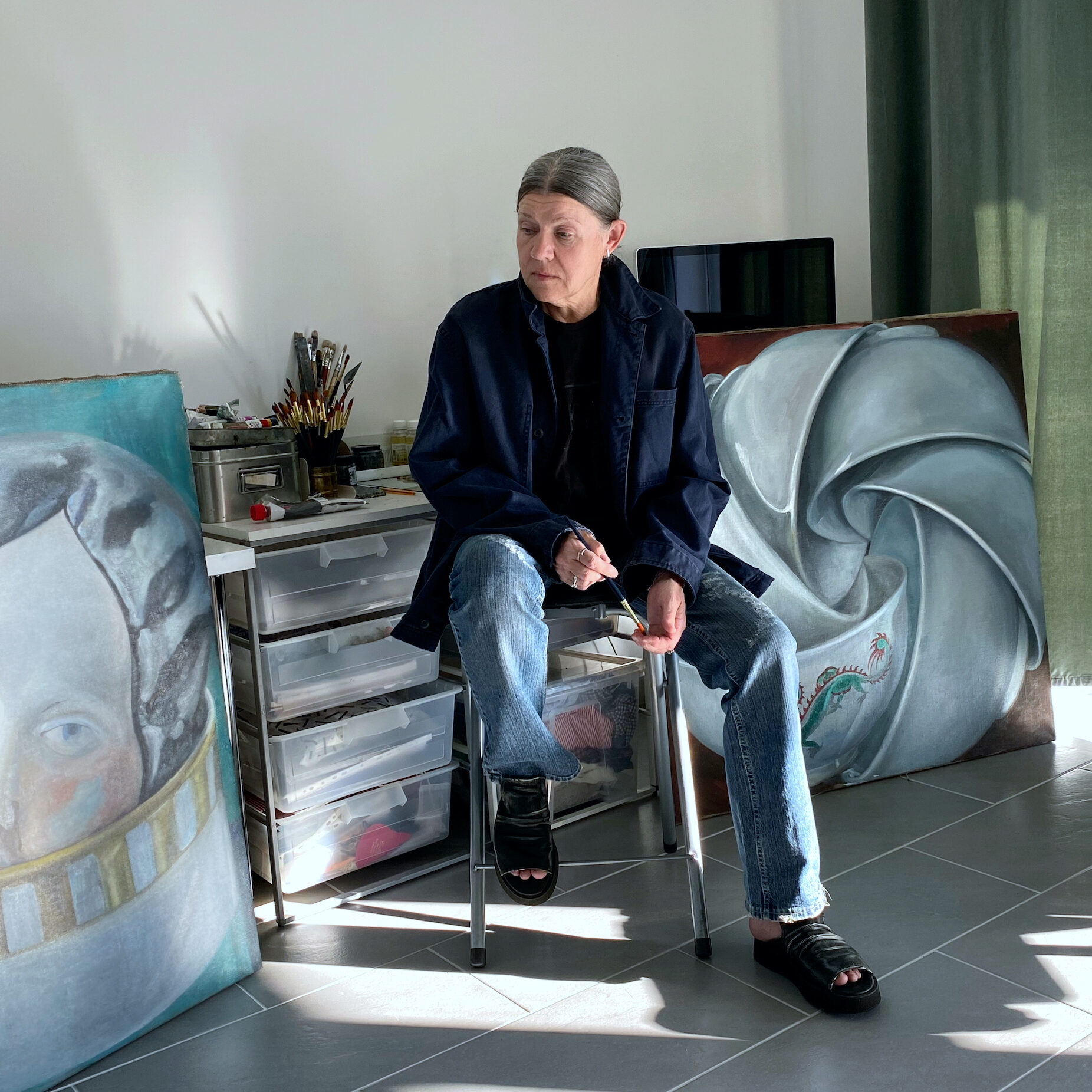 In 2020, Survillo transitioned to painting, establishing her studio in Palanga, Lithuania, as a stepping stone to focus on her individual artistic practice—while cultivating her presence in Berlin’s international art scene through collaborations and recent exhibitions. With solo and group shows in Berlin, Paris, Riga, and beyond, she continues to paint her path as an emerging artist, channeling her cinematic sensibility into a new, visually distinctive body of work.